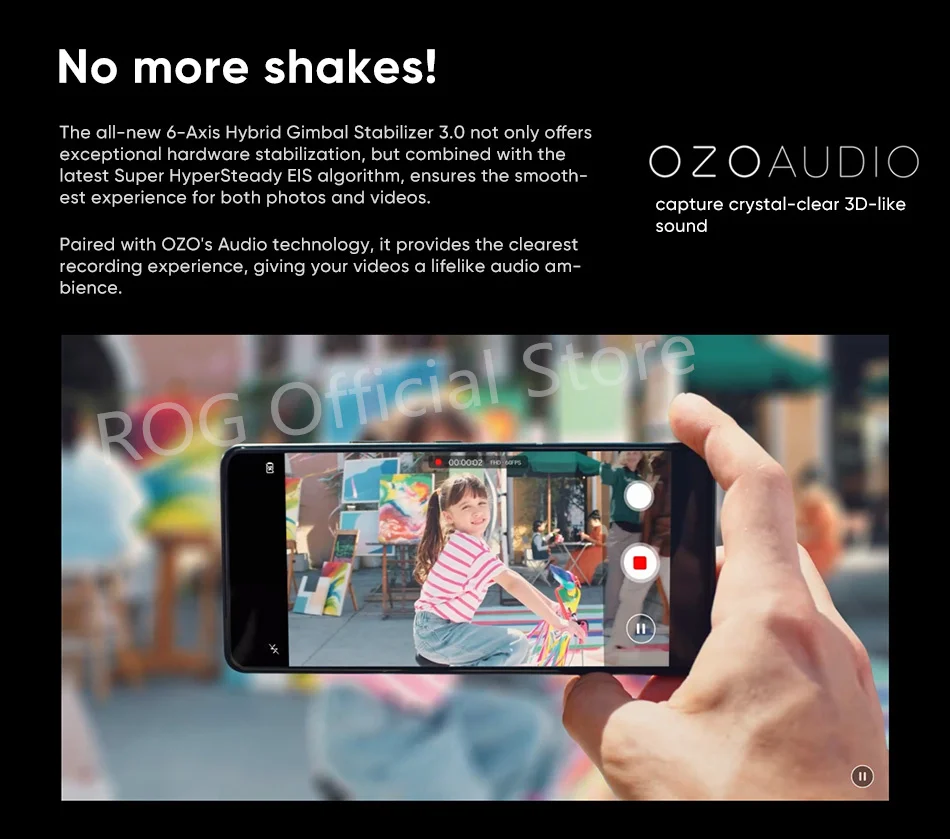 The all-new 6-Axis Hybrid Gimbal Stabilizer 3.0 not only offers exceptional hardware stabilization, but combined with the latest Super HyperSteady EIS algorithm, ensures the smoothest experience for both photos and videos.